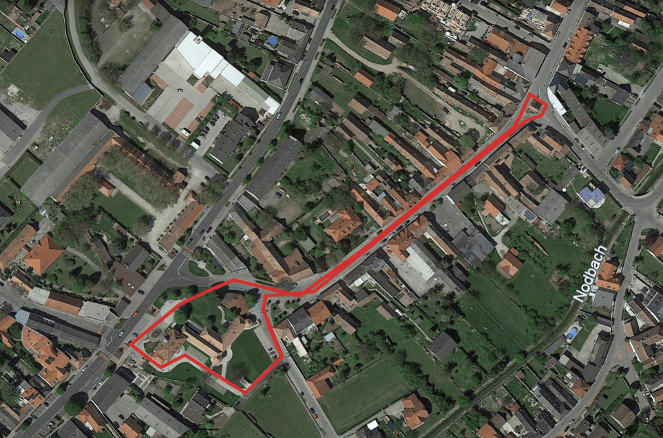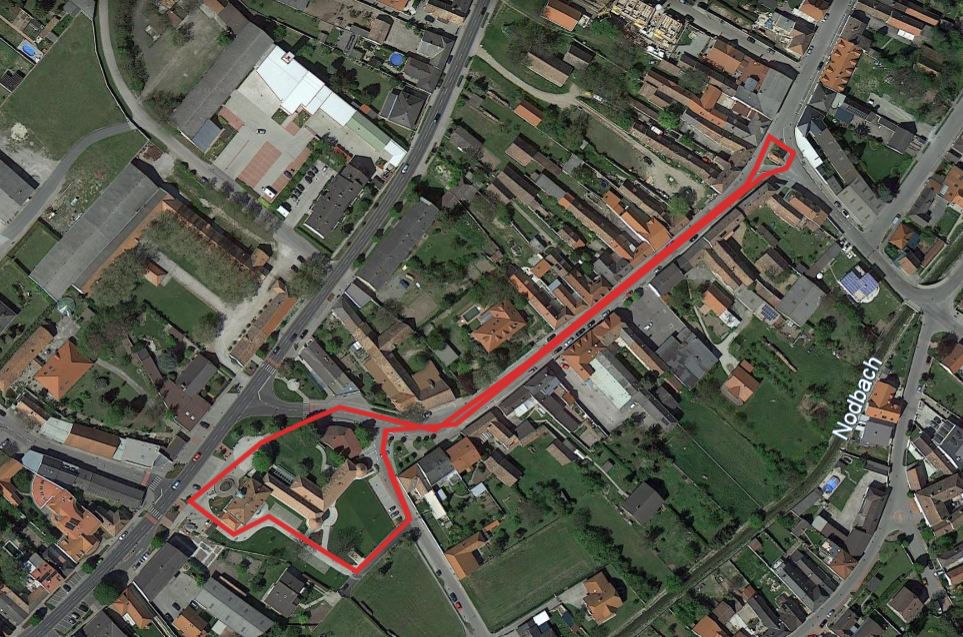Nach dem Start/Zielbereich umlaufen die SchülerInnen das Rathaus, kommen anschließend auf die Hauptstraße und folgen dieser bis zur Johann Nepomuk-Kapelle. Die Kapelle wird einmal umlaufen und auf der Hauptstraße geht es wieder retour zum Start-/Zielbereich in der Burggasse. (800 m)